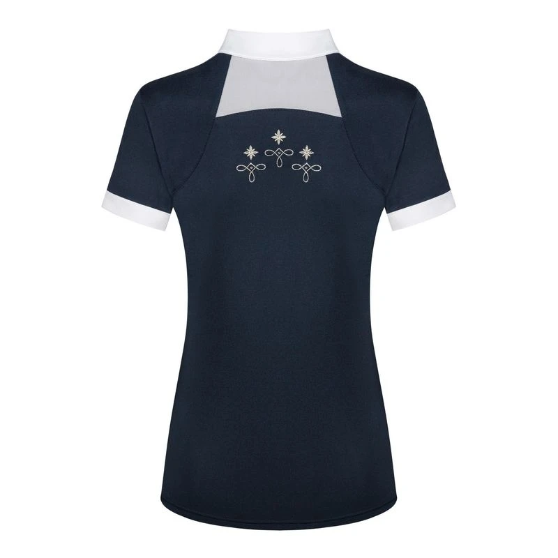 This modern show shirt is made in an elastic, breathable and moisture wicking technical fabric. It has stretch mesh inserts on the sleeves front and back to ensure air circulation. The decorative jets on the front, back and collar add that touch of “fancy” you are looking for.