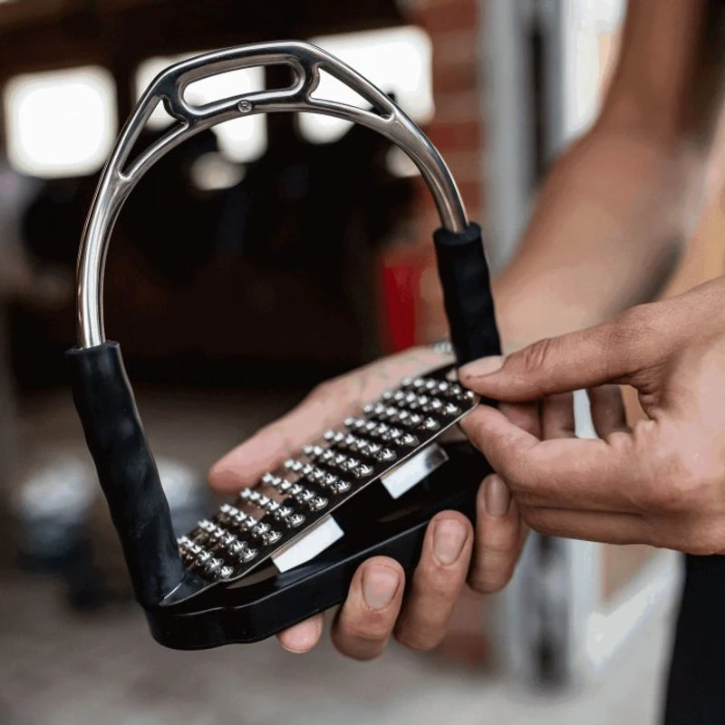 Metal grill stirrup pads are an excellent choice for muddy or slick conditions. Even if you have wet stirrups, or mud on your boots, you still maintain grip contact with the stirrup.