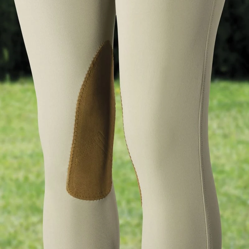 The Horze Women’s Melissa Knee Patch Breeches are great breeches for competition. These simple riding pants include a classic design with caramel brown knee patches. The ribbed, smooth fabric looks polished and professional at all times, even after several washes. The stretch fabric will moves with you over fences and allows for all-day comfort. Choose the elegant Melissa Breeches any time you want a classic look. Design features include a low to mid-rise waist with a front zipper and belt loops. The leather-like knee patches offer exceptional grip in the saddle. These flattering show breeches look timeless on everyone. Made in BV Opti-Pro Fabric. Knee Patch Material is RIMA Stretchable Synthetic Leather.