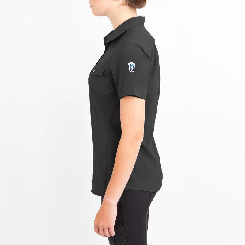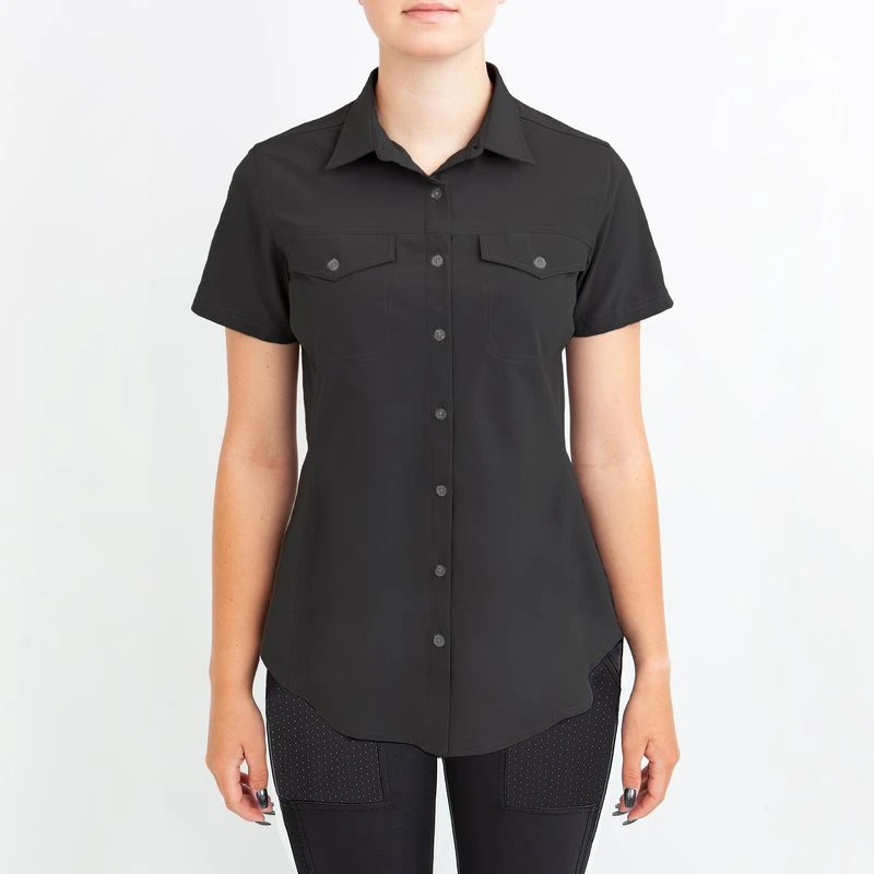 This lightweight short sleeve shirt is made of 4 way stretch fabric paired with IceMesh. It is breathable, moisture wicking, smooth and cool to the touch. The back darts add shape with out being too fitted.