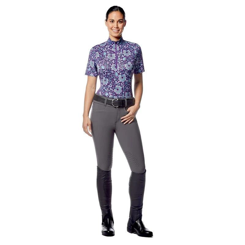 Crafted in Flex&Sculpt stretch-woven fabric that combines an inner power mesh tummy-control panel and a three-inch waistband to provide light compression and hold without sacrificing freedom of movement. Kerrit Sticks Silicone knee patches provide maximum grip while ensuring complete flexibility. Contoured back pockets for in-saddle access. Tailored with front zip fly and three-snap closure. Tonal contrast stitching details add subtle flair excluding tan which is clinic-ready with no contrast stitching.