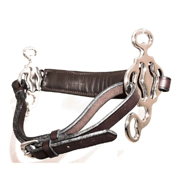 The Roundabout Hackamore is designed with a noseband that follows the natural contours of the horses face with wide, soft padding to ensure comfort. Crafted for optimum performance, this hackamore also looks stunning with stainless steel shank cheekpieces, an American made premium leather nosepiece and chin strap, and your choice of a leather or chain curb.