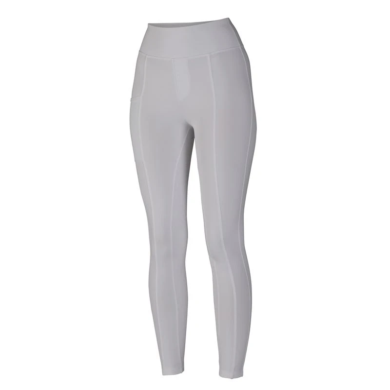 These tights have the substantial feel of breeches with traditional competitive colors and a silicone full seat. The have a high rise pull on waist, and cuff bottoms making them super comfortable. The cell phone pocket on the side is super convenient, but not obvious.