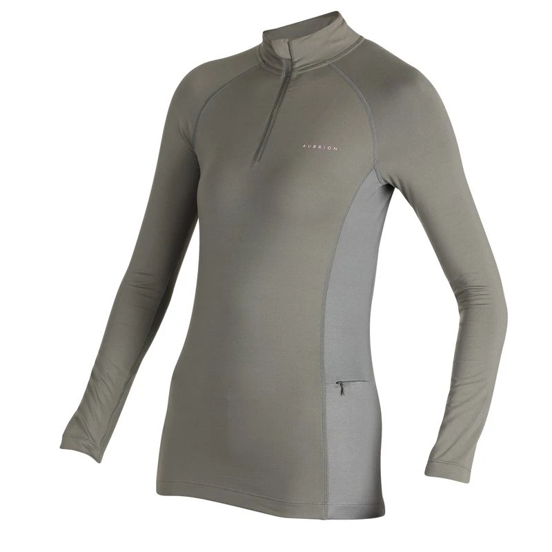 This classic tech shirt from Aubrion is perfect for summer cross country runs, lessons and clinic. The lightweight fabric is UV protectant, stretchy, moisture wicking and breathable. The classic quarter zip with tab collar gives it a clean lined, equestrian vibe and the zipper even has a protecting tab so you won’t scratch your chin or neck.
