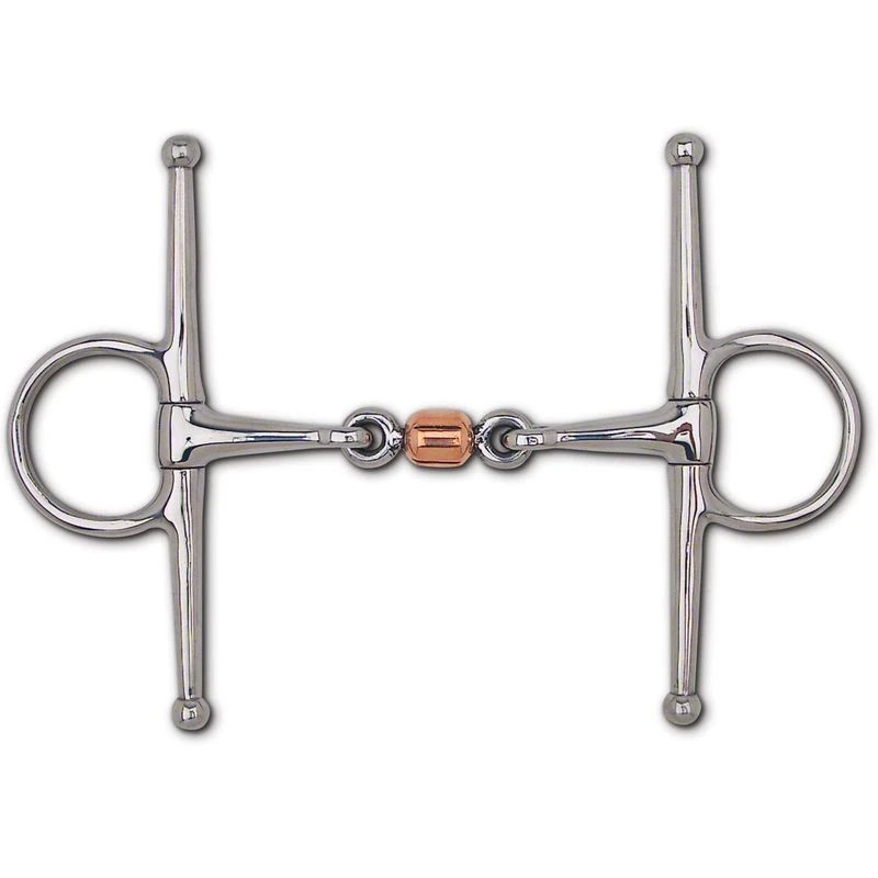 This bit has full cheeks and a multijoint mouth with copper roller.